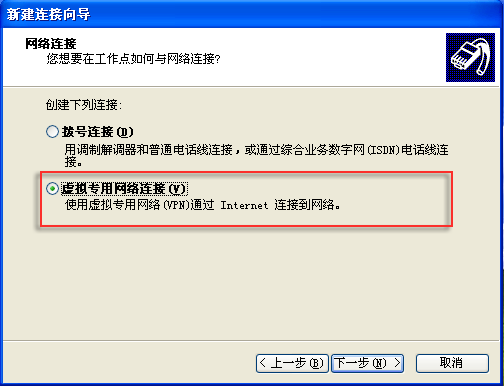 第四步,选择“虚拟专用网络连接”,点击下一步;