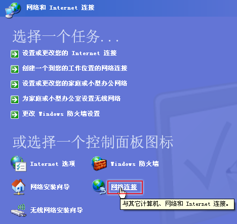 第一步,点击“开始”–“控制面板”–“网络和Internet连接”–“网络连接”;