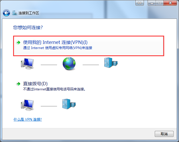 3、在您想如何连接处,选择 使用我的 internet 连接 (动态IP加速器 )