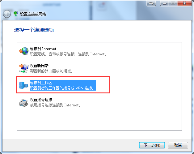 2、在设置连接或网络中, 找到 连接到工作区 设置工作区的网络或者 动态IP加速器 连接。