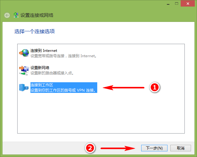 3、选择“连接到工作区”,点击“下一步