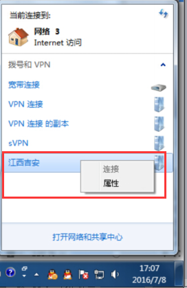 7、点击任务栏下面的“网络”图标,双击刚才创建的网络连接,输入帐号点击连接(网站上注册的那个帐号,账号后面需要加后缀_fz 列如aa123_fz),连接上即可使用。