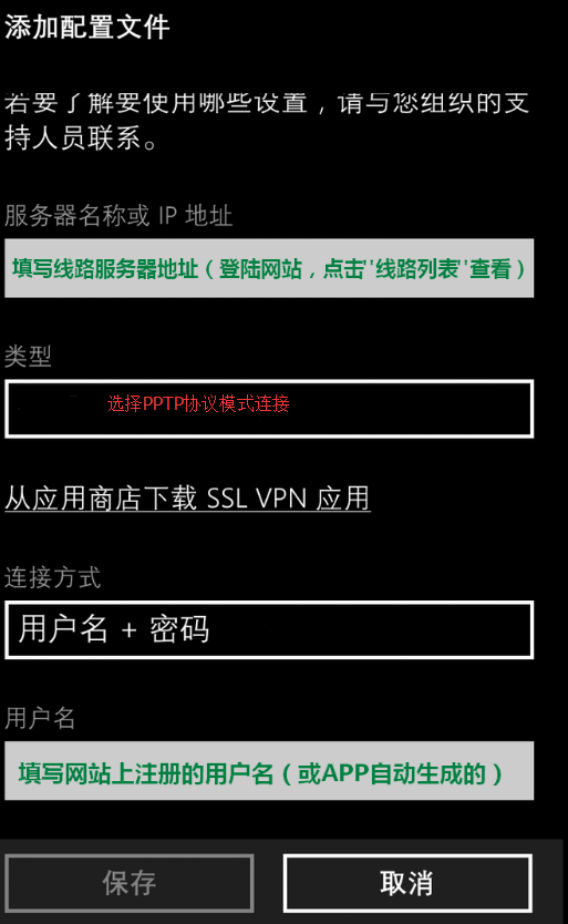 服务器地址:登陆网站,点击查看线路地址(填写线路IP地址或线路域名地址);